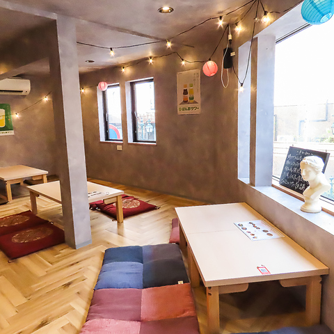 2階には、4名様用の広々としたお座敷を3卓ご用意しております。落ち着いた雰囲気の中で、足を伸ばしてゆったりとくつろぎながら、美味しい料理とお酒を囲んでお過ごしいただけます。お座敷をつなげれば、最大15名様までのご宴会も可能です!会社仲間やご友人、ご家族との集まりなど、大人数でのご利用にぴったりです★
