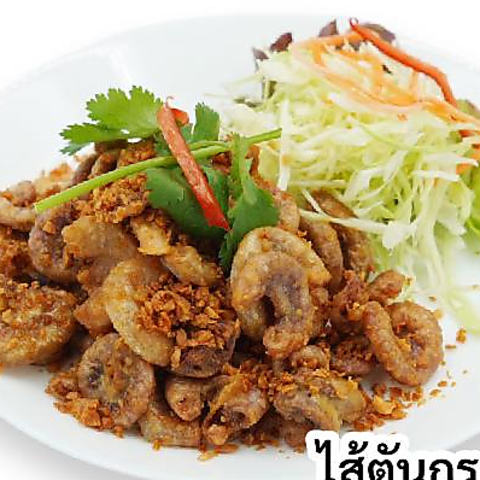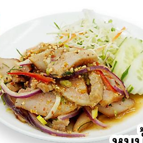新鮮なソフトシェルクラブを丸ごと使用。殻ごと食べられるサクふわ食感が自慢です。特製ソースが素材の旨味を最大限に引き出し、香ばしく奥深い味わいに。油通しで旨味を閉じ込め、高温短時間で炒めることで、素材本来の美味しさを追求しました。ご飯が進む、やみつきになる逸品、プーパップリクタイダム(ソフトシェルクラブ黒胡椒炒め)をぜひ。