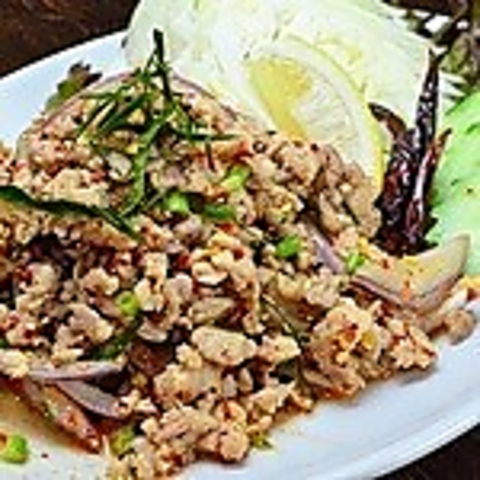 ムーマナーオは、豚肉に爽やかなレモンソースをかけた一皿です。ジューシーな豚肉に、特製のレモンソースで仕上げることで、酸味と甘みの絶妙なバランスが生まれます。レモンのさっぱりとした風味が豚肉の旨味をしっかりと引き立て、食欲を刺激する一品です。お酒との相性もばっちり♪ぜひその魅力を味わってみてください!