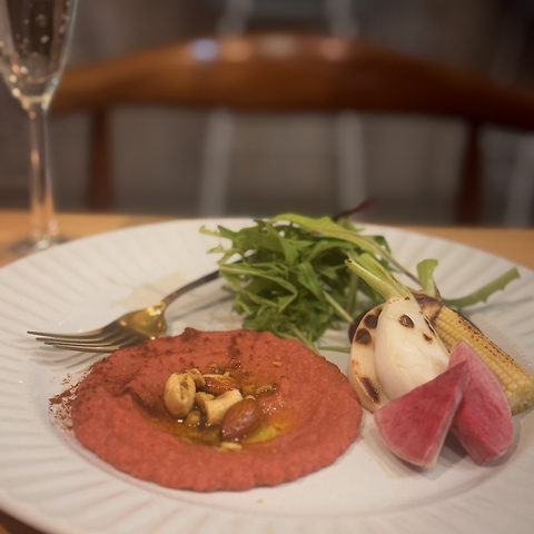 メルボルンのカフェ文化から着想を得た彩り鮮やかな前菜から始まるランチコース。自然体で会話を楽しみながらメインのハラミステーキ、デザートや食後のドリンクまでをご提供します。お昼の休憩時間内に無理なく楽しめる構成、目安は45分。落ち着いて話したいランチミーティングにもお勧めです。