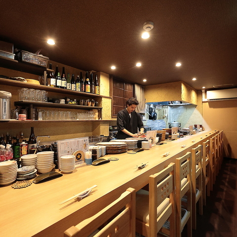 《心地よい空間》落ち着いた雰囲気のカウンター席で、職人技を間近に感じながらお食事を。