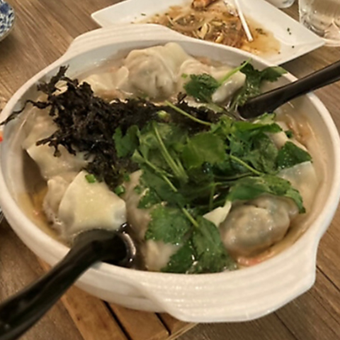 上品なつるつる感ともちもち食感が絶妙にマッチした上海ワンタン。一口食べれば満たされること間違いなし。