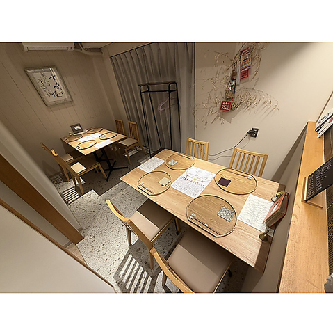 | テーブル | 4名様×2 | グループ様でのご利用に最適です♪2つのテーブル席を連結し、5名様から最大8名様までお座り頂くことも可能です。ご予約はお電話にて承ります |