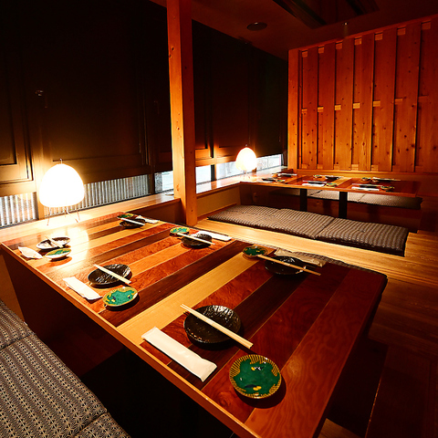 落ち着いた店内は、デートや接待、大切な方との特別な和空間でごゆっくりとお寛ぎください。完全個室は2~30名様まで御利用いただけます。ご家族やご友人、女子会、会社宴会など、様々なシーンでご活用頂けます。
