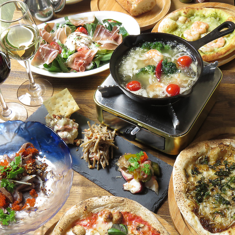 おつまみを中心に窯焼きピザなど当店名物をリーズナブルに!《+500円で滞在時間・飲み放題L.Oを30分延長◎》