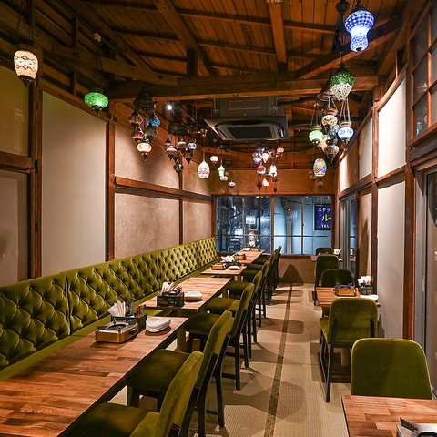 古民家を1から改装した店内は、畳にテーブル、煌びやかならんたんと大正ロマン溢れる雰囲気となっております!カウンター席は解放感あふれるオープン席の為、入りやすい雰囲気となっております♪2階席は貸切も可能となっておりますので、お早目のご予約がおすすめです!