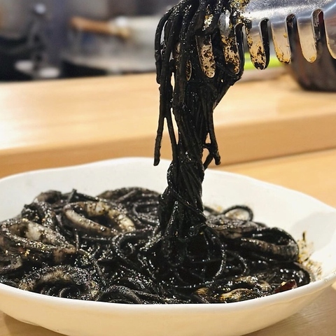 お客様から一味違うと好評の「イカ墨パスタ」は、麺にもイカ墨を練り込んだ当店ならではの逸品!一口食べれば、濃厚なイカ墨の風味が口いっぱいに広がります!是非一度ご賞味ください。