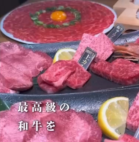 肉寿司や厚切り牛タン、各種和牛を堪能出来る一番人気コース。 王様ユッケ・肉寿司・厚切り牛タン・上カルビ・奇跡のハラミなど計16種。