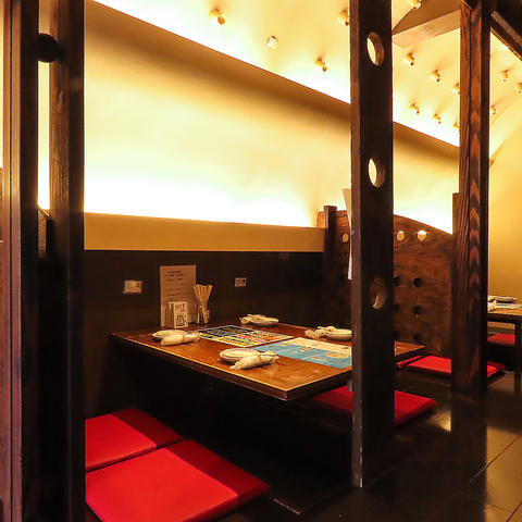 ご友人との宴会や仕事終わり等、様々なシーンで気軽にご利用いただける掘りごたつ半個室をご用意!どこか安心する雰囲気が漂う店内でぜひ料理やお酒をご堪能ください!!