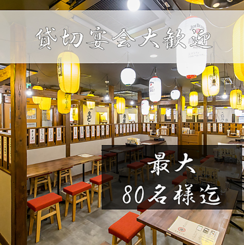 駅から徒歩5分の、超駅チカ!!サクッと飲みにも、宴会にも便利な立地となっています!外観は、ネオンの看板が目にひくようになっており、夜でもお店を見つけていただきやすくなっております!