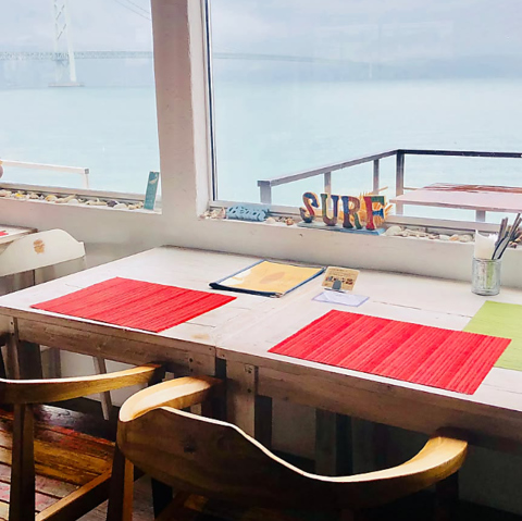 店内テーブル席は4名テーブルを5席ご用意しております。カフェを楽しみながらゆっくり本を読むも良し!お連れ様とおしゃべりも良し!開放的な海を見ながら最高のお時間をご提供いたします◎