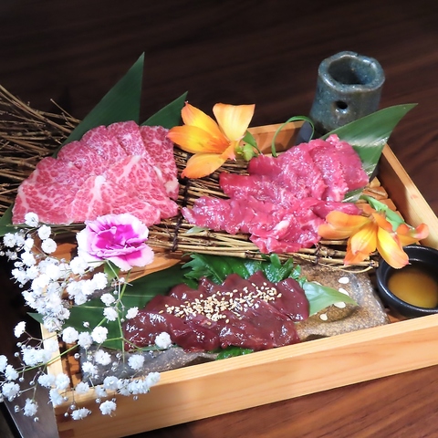 当店名物の『0秒馬しゃぶ』など馬肉料理、天草直送のお刺身盛り合わせ、熊本食材を使用した串揚げなど。熊本の豊かな自然が生み出す味覚の数々を余すことなくご堪能いただける各種コースをご用意しております。ぜひ当店自慢の逸品の数々を、お好みやご予算に合わせたコースでお愉しみください。