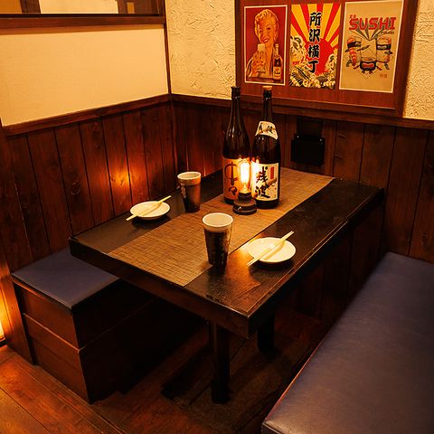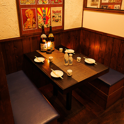 どこか懐かしいポスターが昭和レトロな雰囲気を演出!温かい灯りに包まれた半個室は、ゆったり腰を落ち着けてくつろげます!お酒を片手に、仕事帰りの一杯や友人との飲み会にちょうど良い空間です!