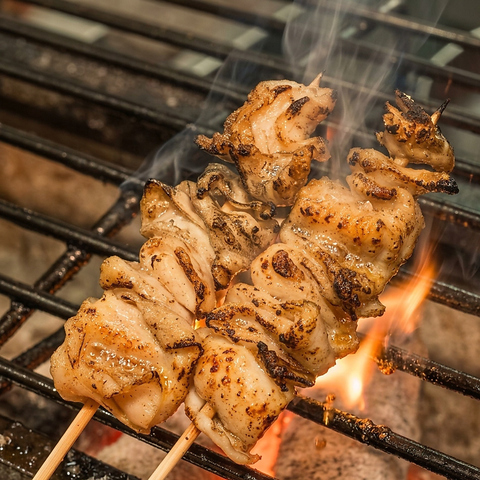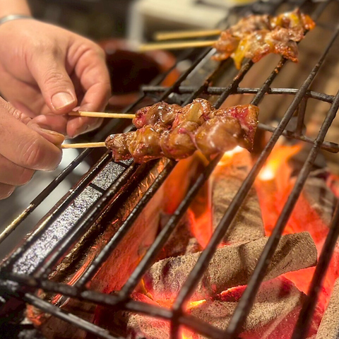 「銘柄鶏」を使用した当店のやきとりは1本220円(税込)~とリーズナブルな価格で、2本~ご注文を承ります。ヘルシーながら肉本来の旨味溢れる銘柄を使用。1本1本備長炭で丁寧に焼き上げます。他にもお野菜や雲仙ハム・焼きおにぎりなど様々な串をご用意。