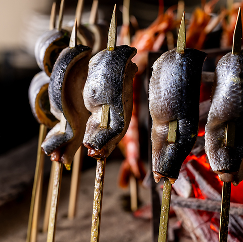 【北海道炉端焼き 篝-kagari- 炉端焼き】北海道産食材を中心に、全国各地から取り寄せる旬食材をシンプルに味わえます。どのお席からも炉端で焼いている様子をご覧いただけるため、お食事を待っている間も店内の雰囲気をお楽しみいただけます。◇札幌 すすきの 居酒屋 炉端焼き ろばた焼き デート 記念日 誕生日◇
