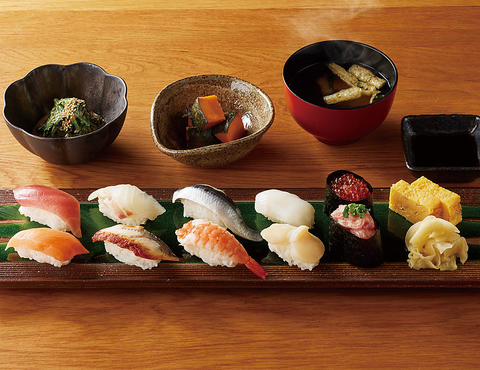 - 寿司(寿司10貫、小鉢2品、お椀)