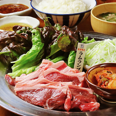 1頭の羊よりわずかしか取れない大変希少なお肉です!霜降り肉の特上肩ロース、赤身肉のショルダー、骨付き肉のラムチョップ、網焼きの特製コンロで焼き上げ、オリジナルの3種類のタレでお召し上がり頂けます。クーポンご利用で更にお得!