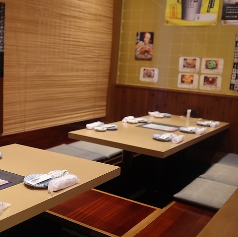 各席背面にすだれを設置した半個室掘りごたつ席6名席×2テーブルご用意がございます。6名~10名、15名~20名にて半個室のご利用が可能となります♪