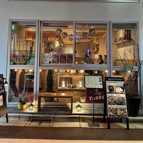 【どなたでも大歓迎×オシャレ空間】ガラス張りのエントランスが開放感を演出する外観から、店内に足を踏み入れると、明るくお洒落な空間が広がります。メキシコならではの明るさと、ホッと落ち着くような店内でアットホームな雰囲気となっております。どなたでもお気軽にご利用いただけます。