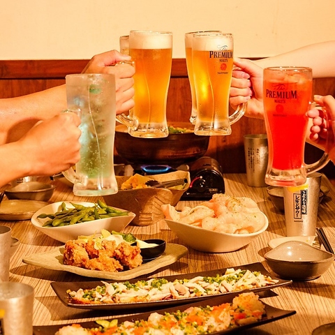 同僚やご友人と集まるような飲み会、ワイワイ楽しむ女子会、大人数で行う会社宴会・同窓会など人数や利用シーンに合わせてご案内可能のお席を各種完備!生ビール含む50種以上のドリンクを飲み放題で楽しめるコスパ抜群のコースもありますので是非ご利用ください!※画像はイメージです。お席の詳細は店舗により異なります。