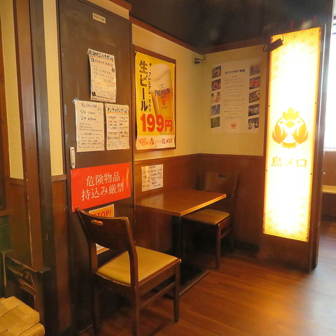 いつでも気軽にフラッと利用できる焼き鳥居酒屋。鳥メロでは気心知れた友人や会社の同僚と気兼ねなく、ゆったりと飲み会を満喫できるお席を完備しております。こだわりの鳥料理を囲みながら90種以上の多彩なドリンクを片手に楽しいお時間をお過ごしください♪※画像はイメージです。お席の詳細は店舗により異なります。