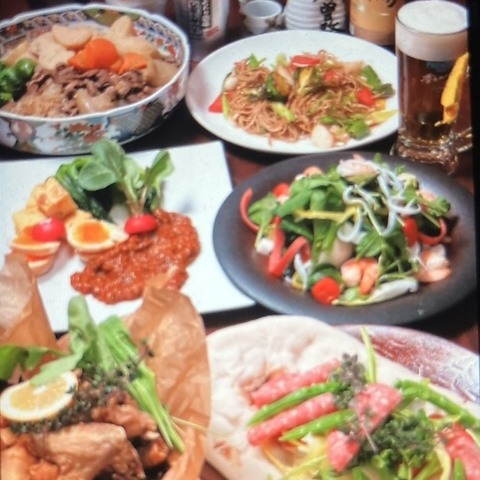 お一人様4000円(税込)から提供されるコースは、信州各地から届く旬の食材を約80種類のメニューから贅沢に構成。例えば、鮮度自慢の馬刺しや、外はカリッと中はジューシーな山賊焼きなど、この土地ならではの味覚が次々と登場。プラス2500円(税込)で追加できるビールもOKの2時間飲み放題もございます。