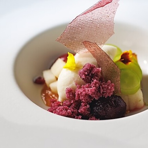 季節ごとに最も輝く旬の食材を全国から厳選。フレンチの確かな技法をベースにしながらも、繊細な和の感性を取り入れた独自のフレンチ・ジャポネを追求しています。素材本来の旨味を最大限に引き出す丁寧な仕事と、目にも美しい盛り付けが特徴。一皿ごとに日本の四季とフレンチのエスプリが融合した、心に残る美食体験をお約束します。