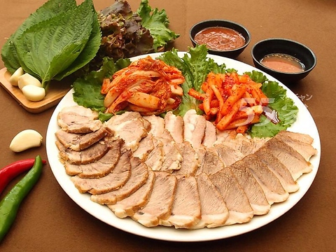 韓国でお酒のつまみとして親しまれている「豚足(チョッパル)」と「蒸し豚(ポッサム)」は、当店自慢の二大メニューです。独自の調理法で臭みを抑え、深い味わいに仕上げた豚足は、もちもちとした食感が魅力。一方、ふっくらと蒸し上げた蒸し豚は、柔らかくヘルシーな美味しさ。どちらもマッコリやチャミスルといった韓国焼酎との相性抜群◎