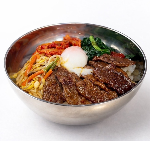香ばしく焼き上げたお肉と彩り豊かなナムルを、ごはんと一緒に楽しむ人気メニュー。しっかり混ぜることで旨みが一体となり、最後の一口まで飽きずに味わえます。