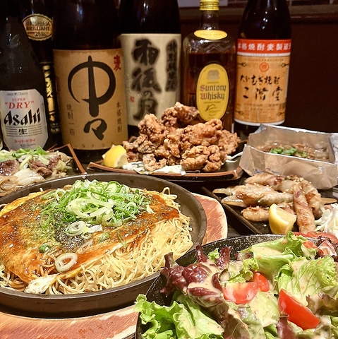 お昼から晩までお好み焼きを中心に楽しめ、夜は鉄板居酒屋としてアルコールやサイドメニューも充実!