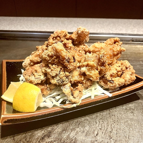 外はカリッと、中はふんわりジューシー。特製醤油ダレが染み込んだやみつき唐揚げ!鶏もも肉を丁寧に下味に漬け込み、外はカリッと香ばしく、中はしっとりジューシーに仕上げた自慢の一品。特製醤油ダレの香ばしい風味が食欲をそそり、ビールとの相性は抜群!お子様から大人まで幅広く人気のある、王道メニューです。
