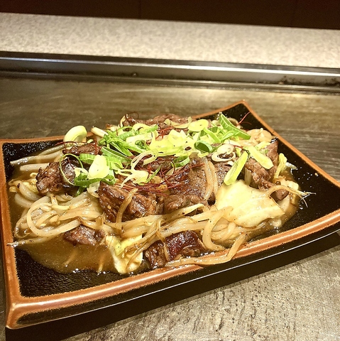プリッとした牛すじの食感と塩ダレの旨味があとを引く、大人の鉄板おつまみ。柔らかく煮込んだ牛すじを鉄板で香ばしく炒め、ネギと一緒に塩ダレで味付け。程よい塩気が牛すじのコクを引き立て、ビールやハイボールにぴったりな一皿に仕上げました。シンプルながら旨味たっぷり、リピーター続出の人気メニューです。