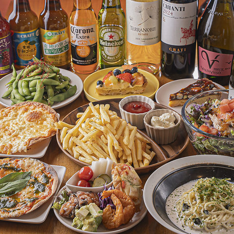 【毎日17:00~18:00限定】対象ドリンクがお得に楽しめるハッピーアワー開催中!ガーリックシュリンプやオニオンリングなど、お酒が進むバルメニューも充実しています。お仕事帰りのサク飲みや、ディナー前の0次会にも最適。カウンター席で気軽な一杯をお楽しみください。