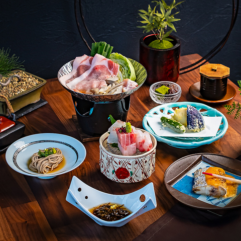 特製山家鍋をメインに、腕利きの和の職人が、厳選された食材とを確かな技術でお作りするコースをご用意。