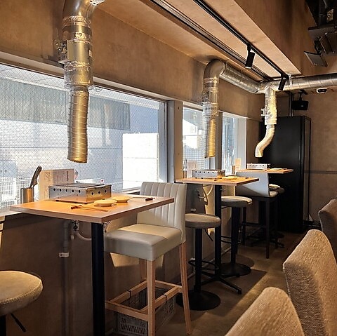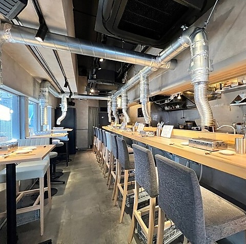 洗練された大人な雰囲気の店内は、どの角度から撮っても絵になる空間。調理のライブ感を間近で楽しめるカウンター10席や、落ち着けるテーブル6席は、独創的な肉料理を引き立てる最高の舞台です。お洒落なライティングが料理をより美しく照らし、美味しい食事と最高の写真撮影を同時に楽しむことができます。