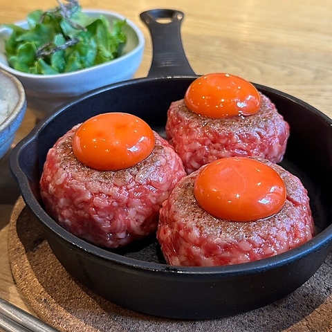 甘辛い特製ユッケダレと卵黄に絡めてお召し上がりください。味変に「ユッケの友達。生肉セット」がおすすめです。