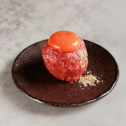 卵黄が艶やかに輝く「タレユッケ」は、厳選された生肉の濃厚な旨みをダイレクトに味わえる至高の逸品です。渋谷区の認可を受けた施設だからこそ提供できる料理の数々と秘伝のタレが織りなす極上のハーモニーをご堪能ください。シンプルながらも圧倒的な存在感を放つ美しい一皿です。