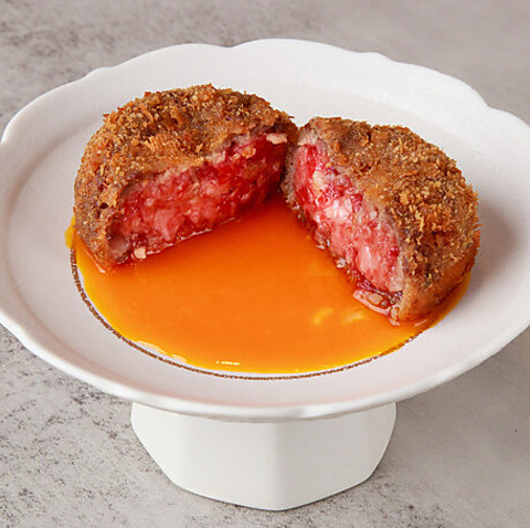 見た目はメンチカツ?でも中は…割ってからのお楽しみ!ジャンクでくせになる味わいです!