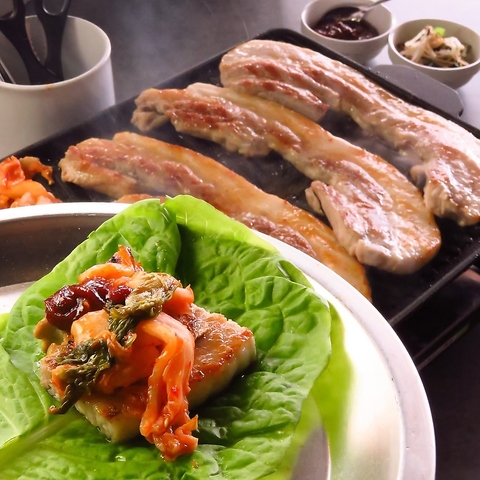 韓国料理といえばサムギョプサル!厚切りの豚肉に韓国味噌サムジャンの相性バッチリ!!