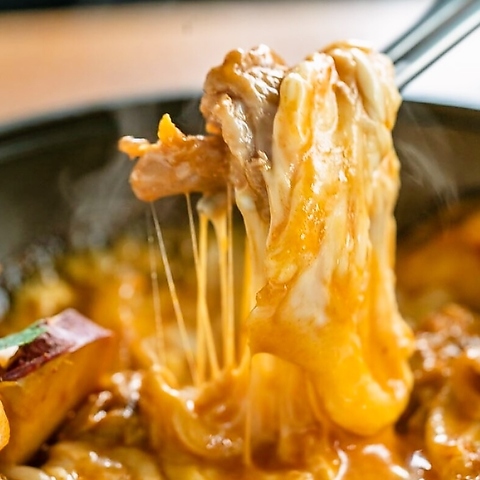 甘辛コチュジャンソースと2種類のトロトロチーズは相性抜群。 たっぷり絡めてお召し上がりください。〈〆麺:350円(税込)〉