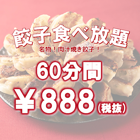 肉汁溢れるパリパリの焼餃子が1時間888円(税抜)で食べ放題!ドリンクメニューもお手頃価格でご提供◎