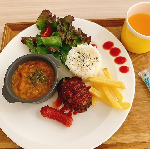 当店でも人気が高いメニュー「欧風黒カレー」です。少し辛めのグリーンカレーもあります◎トッピングはタンドリーチキン、ハンバーグからお選びいただけます!ぜひ一度は食べていただきたい一品です★
