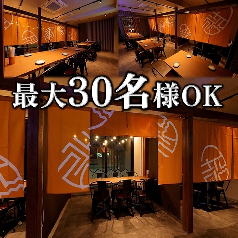 店内は席間隔が広いためごゆっくりお食事をお楽しみいただけます。フロア貸切で最大30名様までOK!お電話でのお問合せ・ご相談も承っております!