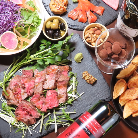赤身の旨味を贅沢に堪能できる肉塊[トマホーク]付コースが登場!噛むたびに溢れる肉汁と弾力がたまらない!豪快な骨付きリブロースは、見た目のインパクトも物凄く、テーブルに運ばれてきた瞬間からみんなのテンションもMAXに!!当店自慢の[トマホーク]を囲んで、ワイルド且つおしゃれな宴会を楽しんじゃいましょ☆