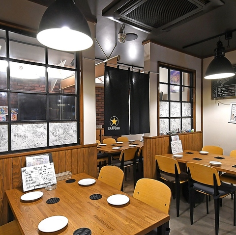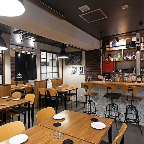 照明の効いた大人な雰囲気の広々としたゆったり空間は接待や会社同僚の宴会にぴったりです。暖かみのある照明が語らいと特別な空間を演出致します。少人数から大人数のお客様までプライベートな空間で楽しめます。テーブル席、カウンターを開放すれば大空間となり、最大1組35名様までの宴会が可能です。