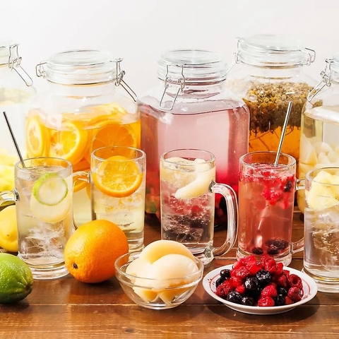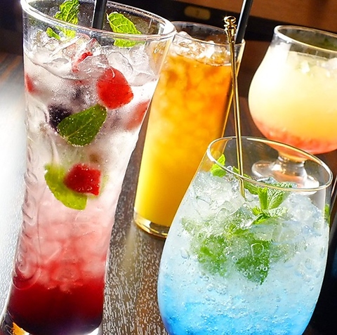 ◎当店では食欲増す「果肉楽しむ」果肉入りオリジナルドリンクや女子ウケ、女子会にピッタリなオシャレなドリンクを多数ご用意しております。甘さ楽しむモモ、爽快感ではレモン、酸味と甘味の調和はキウイなど様々なドリンクでお楽しみ頂けること間違いなし!!