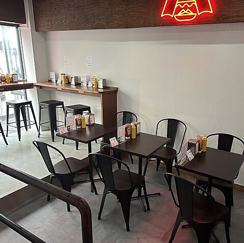デートや少人数でのご利用に最適なテーブル席。人数に合わせてテーブルを繋げることも可能なので、2名様以上のご利用でも安心です◎お店こだわりのバーガーを囲んで、楽しい時間をお過ごしください。