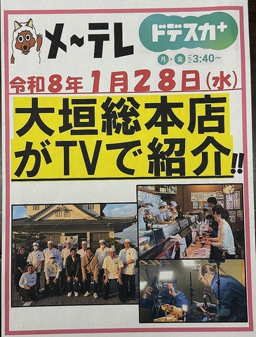 1月28日(水)pm3:40~メーテレ「ドデスカ+」にて大垣総本店が紹介されました♪