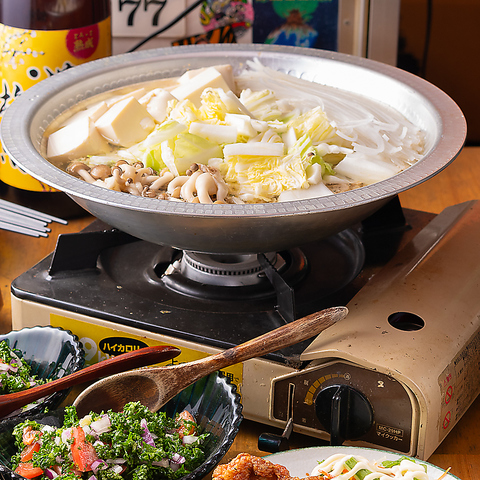 タッブーレ(パセリのサラダ)から始まり、カリッとジューシーなたれ唐揚げ!そして、自慢のショウガ風味のつくねを使った鍋が登場!カレーや味噌、醤油、キムチ、ポン酢などからお好みの味を選べる鍋は、心も体もほっと温まります◎〆の雑炊か麺でさっぱりと締めくくり、最後はデザートで甘い幸せを味わいましょう♪