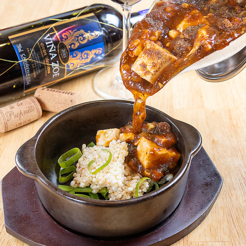 一番人気「麻婆豆腐」はアツアツの土鍋におこげが入っており、別皿でご用意した麻婆豆腐をお客様自身でかけていただくため、目でも楽しめる逸品!お好みで自家製の山椒オイルをかけてどうぞ♪